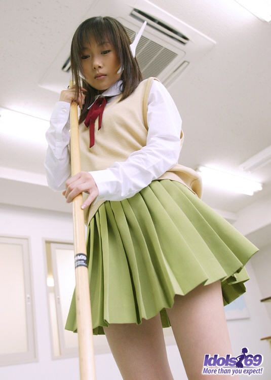 Asian hoodrat cloths the part of a college girl and makes clean up the schoolroom